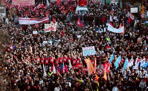 中新網(wǎng)1月30日電 香港大公報(bào)消息,超過(guò)二百萬(wàn)法國(guó)工人星期四舉行全國(guó)大罷工,從巴黎巴士底監(jiān)獄遺址出發(fā)前往市中心,試圖迫使薩科齊總統(tǒng)和商界領(lǐng)袖作出更大努力,在經(jīng)濟(jì)危機(jī)時(shí)期推行政策保護(hù)職位和工資。