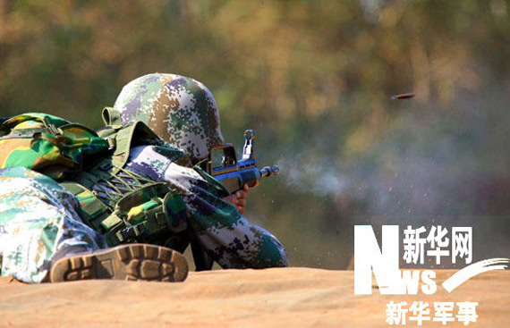 中國士兵正在進(jìn)行百米胸環(huán)靶射擊 [新華社記者 李剛 攝]