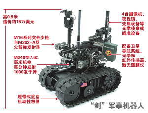 部署到阿富汗的智能機(jī)器人“赫耳墨斯”主要用于探穴鉆洞,它身上安裝有兩個照相機(jī),能爬進(jìn)漆黑洞穴并向外發(fā)送圖片;美軍機(jī)器人“劍”在伊拉克戰(zhàn)場更是神通廣大,它能輕易通過任何阻礙,備彈200發(fā),裝備一挺經(jīng)改造的M249型機(jī)槍,射速高達(dá)1000發(fā)/分鐘,火力強(qiáng)度足以與一挺重機(jī)槍媲美;而“背包”機(jī)器人則能在巷戰(zhàn)環(huán)境中捕捉、分辨反美武裝狙擊手的細(xì)微動靜;“嗅彈”機(jī)器人能靈敏地嗅出偽裝起來的爆炸物;名為“仿生蒼蠅”的機(jī)器人則可做一些復(fù)雜的手術(shù)……
