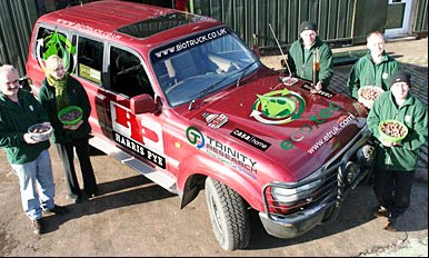 參加這次活動(dòng)的冒險(xiǎn)家,工程師安迪·佩格和電工約翰·格雷姆肖希望借此行提高人們對(duì)可以減少碳排放量的可再生性生物能源的認(rèn)識(shí)。
