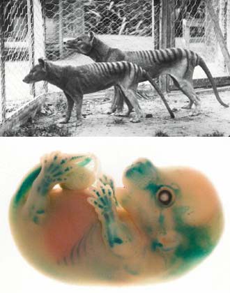 中新網(wǎng)5月21日電 科學(xué)家20日表示,他們將已滅絕的袋狼(Thylacine,又稱Tasmania Tiger或Tasmania Wolf)基因植入老鼠體內(nèi),使這個(gè)基因順利“復(fù)活”。這項(xiàng)突破意味,科學(xué)家有朝一日或許真的能像電影“侏羅紀(jì)公園”所演的,使恐龍等已滅絕的生物復(fù)活。