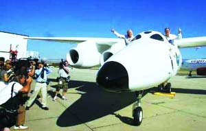 英國維珍集團董事長理查德·布蘭森28日首次向外界展示公司太空游項目關(guān)鍵裝備——運載載人飛船的母船“白騎士二號”。預(yù)計太空游首發(fā)團將于2010年成行。
