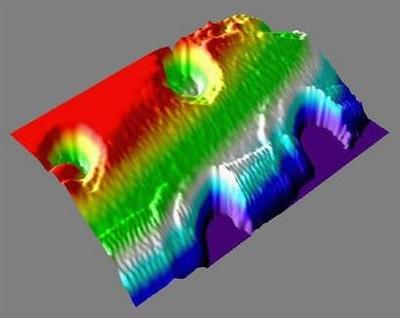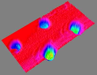 在美國宇航局網(wǎng)站公布的一幅照片上,位于顯微鏡硅襯底上的4個土壤顆?瓷先ハ4個小球,而實際上每個顆粒的直徑僅為1微米,相當(dāng)于1米的一百萬分之一。這樣的觀測精細度只有原子力顯微鏡才能達到,而且它可以對顆粒進行三維觀測。
