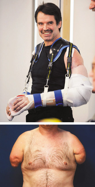 默克展示自己的雙臂高興地說,難以形容再度完整的感覺:“我的機(jī)動性每天不斷增加”。默克的療程仍在持續(xù)進(jìn)行,雙臂目前用一件特殊的“緊身衣”支撐著。