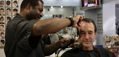 英國(guó)《泰晤士報(bào)》的記者馬丁·弗萊切爾近日就找到扎里夫,體驗(yàn)了一把“坐在奧巴馬平時(shí)理發(fā)的椅子上,由奧巴馬的理發(fā)師用同一把剪刀和梳子,剪出同一個(gè)發(fā)型”的感覺(jué)。扎里夫一邊給馬丁理發(fā),一邊聊道:奧巴馬上周一還到店里理發(fā)。他說(shuō),奧巴馬平時(shí)經(jīng)常從他在海德公園社區(qū)的家散步走到店里理發(fā),而如今,他每次來(lái)都是一個(gè)車(chē)隊(duì)跟著,至少會(huì)有20名保鏢嚴(yán)守四周,“天花板上都恨不得有保鏢”。已經(jīng)在店里的客人可以留下,而其他顧客則不再準(zhǔn)許入內(nèi)。他必須在20分鐘內(nèi)給奧巴馬理完,否則店外就會(huì)圍滿(mǎn)了蜂擁而至的人。除了一個(gè)人之外,從來(lái)沒(méi)有人抗議過(guò)奧巴馬插隊(duì)。扎里夫幽默地說(shuō),“那個(gè)人肯定是個(gè)共和黨人”。
