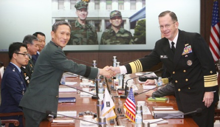 中新網(wǎng)11月6日電 韓聯(lián)社消息,韓國(guó)聯(lián)合參謀總長(zhǎng)金寬鎮(zhèn)和美國(guó)參謀總長(zhǎng)邁克爾·馬倫(海軍上將)6日上午在首爾龍山區(qū)國(guó)防大樓舉行第29次韓美軍事委員會(huì)(MCM),集中討論了兩國(guó)軍事領(lǐng)域里懸而未決的問(wèn)題。