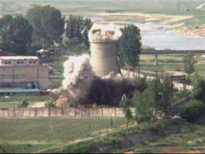 圖:朝鮮當(dāng)?shù)貢r(shí)間17時(shí)05分炸毀寧邊核設(shè)施冷卻塔