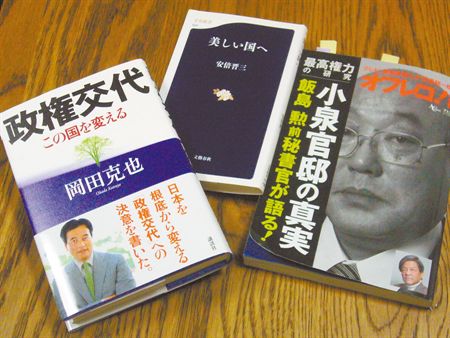 在野的民主黨黨魁小澤一郎在政黨輪替呼聲高的06年一口氣出版《小澤主義》和《剛腕維新》2本書,民主黨副黨魁岡田克也《政權(quán)輪替》也在為執(zhí)政敲邊鼓。