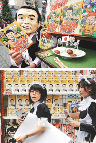 秋葉原以大型電器產(chǎn)品販賣店聞名,現(xiàn)在成為“御宅族”最佳聚集點。商店販賣最新出版的漫畫與卡通DVD,女侍應(yīng)生扮成當(dāng)紅電玩游戲中的各種人物。其中一個店面展售綴有麻生與福田卡通畫像的蛋糕與餅干。店長黑相宣一表示:“福田康夫宣布辭職后不久,以他為主題的商品銷路很好,與麻生有關(guān)的商品賣得更好。我們會將與麻生有關(guān)的商品擺在最顯眼的展售位置,因為他是最受矚目人選!