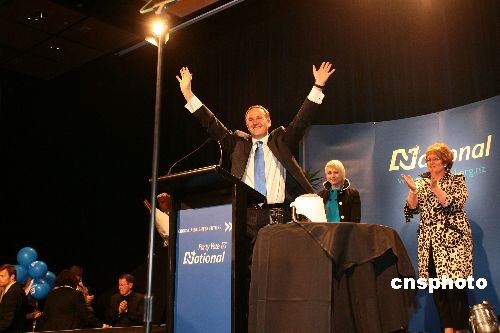 當(dāng)?shù)貢r(shí)間11月8日,2008新西蘭大選最后以國家黨勝出而告終,國家黨黨魁John Key當(dāng)選新西蘭下一屆總理。中新社發(fā) 李凌昊 攝