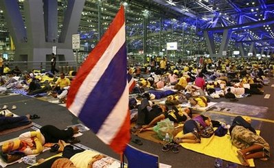 據(jù)悉,約2000名示威者闖入新國際機場客運大樓的離境大堂,泰國機場公司宣布在當(dāng)?shù)貢r間25日晚上9時起暫時關(guān)閉機場,準(zhǔn)備在機場降落的航機要轉(zhuǎn)飛清邁、布吉和其它地區(qū)的機場,數(shù)以千計旅客滯留。