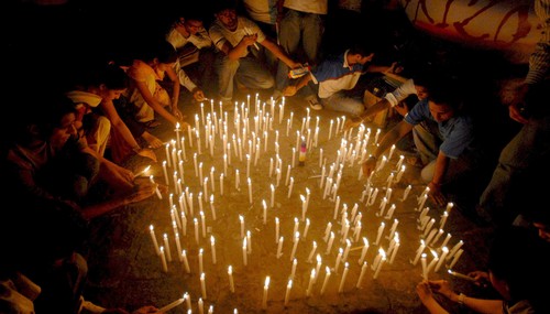 印度兒童點(diǎn)燃蠟燭為孟買恐怖襲擊遇害者哀悼