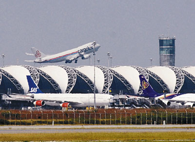 曼谷新機場的“空機”1日獲準(zhǔn)起飛,到泰國其它地方接載旅客。