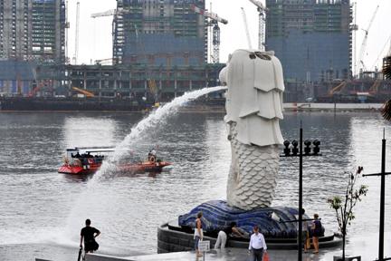 高8.6米,重70噸的魚尾獅塑像是已故新加坡著名工匠林浪新在1972年制作完成。2002年,它從伊麗莎白大道遷到浮爾頓1號(hào)大廈旁的新加坡河畔。