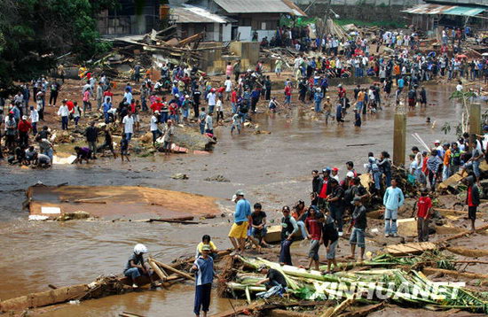 當(dāng)?shù)貢r(shí)間27日凌晨2時(shí)許,在距雅加達(dá)以南約50公里的文登縣發(fā)生湖壩決堤事故。古農(nóng)湖大壩突然崩塌,洪水隨即沖入居民區(qū),水深最高達(dá)2.5米,許多居民在睡夢中被大水卷走。(新華網(wǎng)雅加達(dá)3月29日電/記者趙金川)