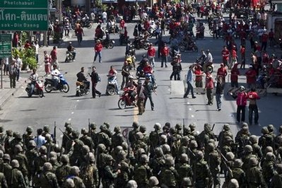 泰國總理阿披實(shí)13日夜對(duì)媒體稱,在同反政府示威者進(jìn)行一天的爭斗后,軍隊(duì)已經(jīng)控制住首都曼谷的局勢。阿披實(shí)說,人們有權(quán)舉行和平示威,但不是暴亂。他說,“我們相信,我們已經(jīng)控制住局勢!