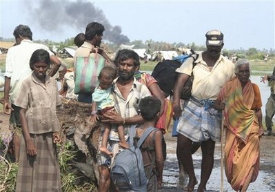 之前政府軍攻打猛虎組織,許多被困平民逃離猛虎組織控制。斯里蘭卡軍方稱,20日約有2.5-3.5萬(wàn)平民逃離猛虎組織控制區(qū)。