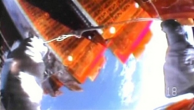 在6小時(shí)的工作中,美國(guó)宇航員帕拉辛斯基嘗試修補(bǔ)一塊在上月底在修展開時(shí)損毀的太陽(yáng)能板的一道裂縫。據(jù)悉,此次修復(fù)工作是成功的,太陽(yáng)能翼板將能全面張開,伸展到適當(dāng)位置。