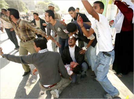 哈馬斯官員說,保安部隊(duì)向那些對(duì)著保安據(jù)點(diǎn)扔石頭的示威者開了槍。