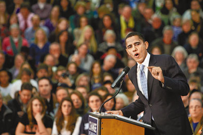 奧巴馬在艾州黨派會議勝出后氣勢如虹,轉(zhuǎn)戰(zhàn)新州乘勝追擊,他繼續(xù)大打變革牌,向支持者承諾為國家?guī)磙D(zhuǎn)變,希望新州選民支持他,“四天后的新州,你有機(jī)會令美國改變”。