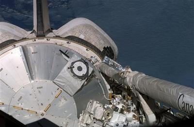 中新網(wǎng)3月13日電 綜合報(bào)道,美國(guó)當(dāng)?shù)貢r(shí)間12日晚,“奮進(jìn)”號(hào)航天飛機(jī)與國(guó)際空間站成功對(duì)接,但比原定時(shí)間遲了40分鐘。