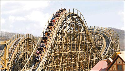 愛寶樂園是韓國最大的室外游樂場;而T-EXPRESS是由瑞士一家公司制造的木制游樂設(shè)施,線路總長1.6公里,是全球最陡峭、全韓國最高最快的過山車,時(shí)速達(dá)104公里,本月14日隆重啟用,但運(yùn)作了僅9天便出意外。