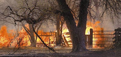 奧德韋附近的東南部平原,風勢持續(xù)疾勁,濕度偏低,氣溫達到攝氏26.7至31.7度?ㄉそ咏屏_拉多斯普林斯的山火燒毀約3642公頃土地。