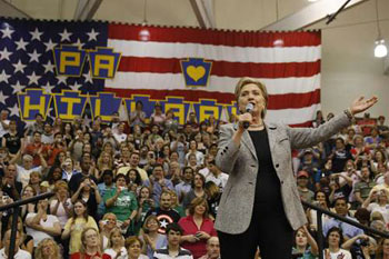 賓州共有158張黨代表票,選前的民調(diào)顯示,希拉里以48%支持率,領(lǐng)先奧巴馬約5個(gè)百分點(diǎn)。賓州的藍(lán)領(lǐng)階層較多,希拉里和奧巴馬前日都刻意親近工人階級(jí),希拉里去酒吧喝啤酒,奧巴馬則登上一列古老列車(chē),到訪貧窮小鎮(zhèn)。