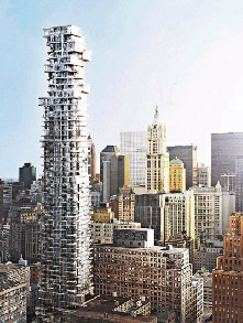 中新網(wǎng)9月15日電 為北京奧運會“鳥巢”體育館進行設計工作、受到各方贊嘆的兩位瑞士建筑設計師赫爾佐格(Jacques Herzog)和德默隆(Pierre de Meuron),將會把他們的創(chuàng)意帶到紐約。他們參與在紐約市內興建一座透明玻璃摩天大樓。當這座建筑物在后年建成后,驟眼看好像一層層單位半浮懸在空中,令人類幻想中的“空中樓閣”活現(xiàn)眼前。