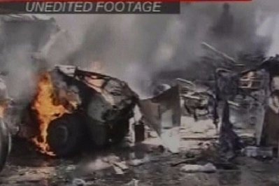 當(dāng)?shù)仉娨暸_播放的爆炸畫面截圖