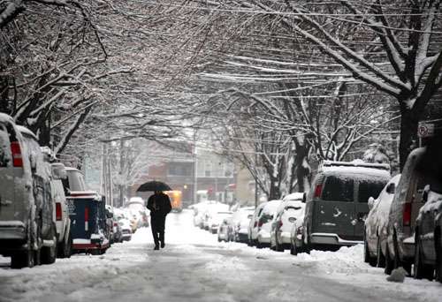 紐約市政府自昨天晚間即嚴陣以待,二十日上午十時前后紐約市開始飄雪,紛飛的雪花在路面累積的同時,市區(qū)各地已見到掃雪車在清理道路。紐約市長彭博已下令約二千名清潔工人臨時調(diào)班清理路上積雪。午間,彭博不但親自到道路清潔隊去視察,同時也透過媒體呼吁民眾在風雪天少開車、改搭乘大眾捷運交通工具。