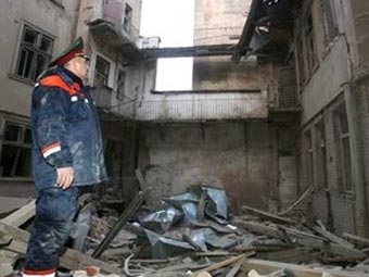 烏克蘭一住宅樓發(fā)生爆炸慘案,一名救援人員在爆炸現(xiàn)場(chǎng)查看。
