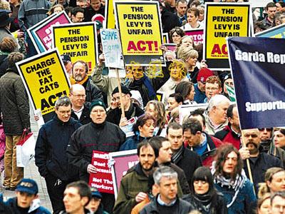 中新網(wǎng)2月23日電 受環(huán)球經(jīng)濟(jì)衰退影響,再有歐洲國家爆發(fā)大規(guī)模示威。據(jù)香港《文匯報(bào)》報(bào)道,12萬愛爾蘭人21日走上首都都柏林街頭,抗議政府拯救經(jīng)濟(jì)不力。參與示威的包括教師、公務(wù)員甚至警察,由于人數(shù)太多,主辦單位要提早出發(fā),人龍一度填滿長達(dá)兩公里的游行路線。