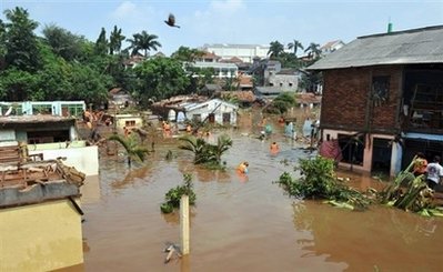 據(jù)悉,當?shù)貢r間27日凌晨2時許,雅加達以南約50公里的文登縣唐格朗地區(qū)的古農(nóng)湖大壩突然崩塌,大水隨即沖入了居民區(qū),釀成災(zāi)難。