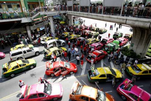 交通警察稱,出租車司機(jī)也參與了示威活動,導(dǎo)致曼谷中心地區(qū)至少一處主要樞紐地帶被堵,勝利紀(jì)念碑附近水泄不通。阿披實(shí)政府目前拒絕使用武力驅(qū)散示威者。