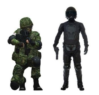 國防科學(xué)研究所有關(guān)負(fù)責(zé)人表示:“如果穿上分兩個階段開發(fā)出的戰(zhàn)服并戴上頭盔,士兵就無異于佩備尖端裝備的‘機(jī)器戰(zhàn)警’!蹦壳,許多發(fā)達(dá)國家也在開發(fā)類似的未來士兵體系,例如,美國的“陸地勇士”(Land Warrior) 等。