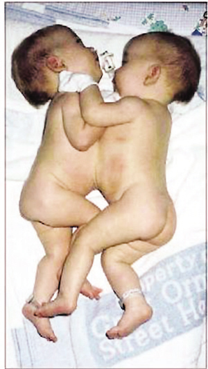 從模糊的B超影像來看,這對連體嬰兒系胸部“粘連”,共享一個肝臟。醫(yī)生們擔心,姐妹倆如果同時共享同一套腸道,那么日后的分離手術將困難重重。出于安全考慮,醫(yī)生建議喬安盡早終止妊娠,接受墮胎手術。然而喬安在與孩子的父親保羅·麥克唐尼爾商量之后,毅然決定要給腹中的孩子一次生的機會。