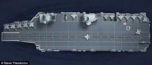 比例1:200的“伊麗莎白皇后號”和“韋爾斯親王號”模型,目前擺放在航母設(shè)計總部的大堂。每艘母艦有6層甲板,最頂是巨型起飛甲板,可運載36架最先進的聯(lián)合攻擊戰(zhàn)斗機和4架直升機,每艘航母能在15分鐘內(nèi)讓24架飛機升空。