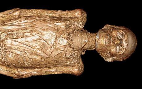 據英國媒體報道,美國芝加哥大學科學家日前利用X光掃描設備掃描的這具木乃伊被認為是公元前800年,埃及底比斯神廟祭司時一名唱歌婦女的尸體。考古學家從安放該木乃伊的棺材上的雕刻文字認定該木乃伊名叫梅熱薩姆(Meresamun)。從掃描的圖像上可看到當時包裹尸體時使用的制作精良的裝飾品。