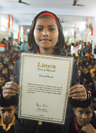 現年9歲的韋瑪(Sushma Verma)目前在北方省首府勒克瑙的圣米拉國際學院就讀,她2007年參加大學入學考試時,只有7歲零3個月又28天。
