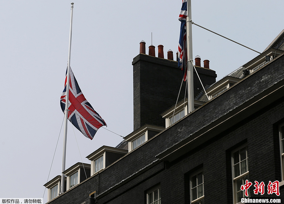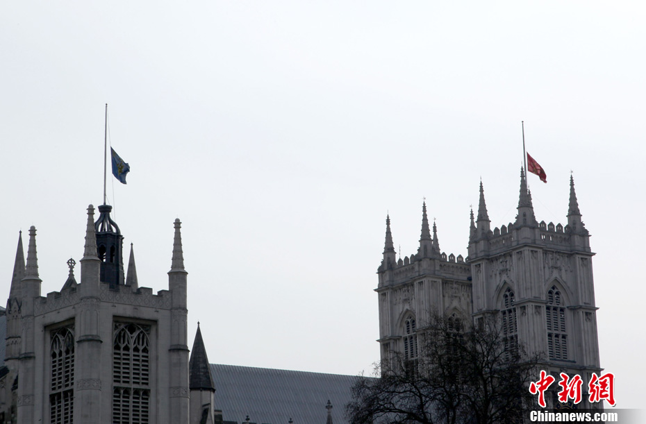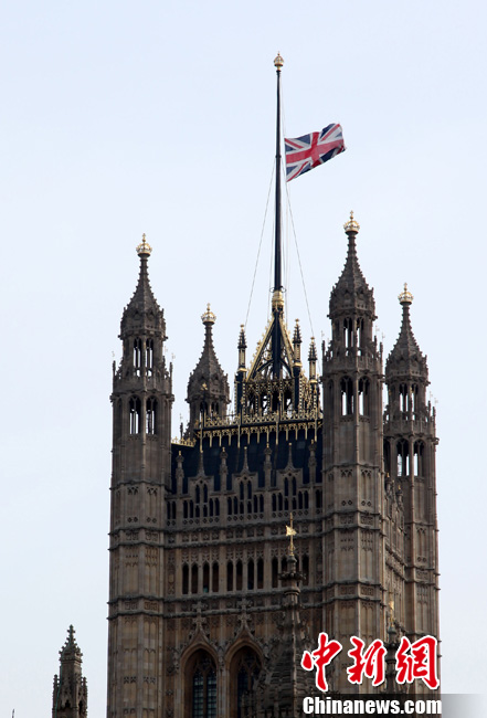 英國議會(huì)大廈降半旗對撒切爾夫人表示哀悼