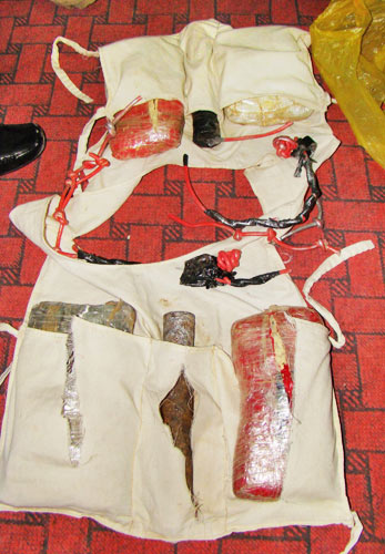 伊拉克警察8月24日在巴古拜從一名女孩身上拆下的炸彈背心。