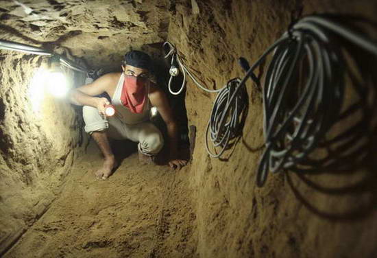 由于埃及官方希望停止向加沙地區(qū)輸送武器的活動(dòng),拉法現(xiàn)在逐漸成為全埃及警力最多的地區(qū)。一個(gè)聲稱是走私販的當(dāng)?shù)厝苏f,由于日益嚴(yán)格的安全檢查,武器走私變得非常冒險(xiǎn)。以色列戰(zhàn)機(jī)近日已經(jīng)對地道發(fā)動(dòng)了日以繼夜的轟炸,不遺余力想要阻斷一切運(yùn)往加沙的槍支、炸彈和現(xiàn)金。但哈馬斯非常精于為這些地道找掩護(hù),他們將地道的出口和入口建于各種各樣的設(shè)施和高樓之中,甚至有些設(shè)施就是為此目的而建造起來的。目前以色列發(fā)動(dòng)地面進(jìn)攻后,為了避免引來殺身之禍,哈馬斯已經(jīng)不再使用移動(dòng)電話和汽車。年輕的哈馬斯武裝成員阿耶門-塔哈說,“我們的人和領(lǐng)導(dǎo)層在加沙的通訊從來不曾中斷過,我們已經(jīng)為任何可能爆發(fā)的地面戰(zhàn)爭做好了準(zhǔn)備。”很顯然,他是指的哈馬斯領(lǐng)導(dǎo)人安然置身于加沙城下的地道之中。