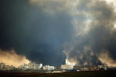 以色列空軍說(shuō),以軍飛機(jī)在夜間共發(fā)動(dòng)60多次空襲,攻擊重點(diǎn)集中在靠近埃及邊境被用來(lái)偷運(yùn)武器的地道。在加沙城郊街頭,以軍部隊(duì)與哈馬斯民兵展開(kāi)激戰(zhàn),報(bào)道說(shuō)當(dāng)?shù)赜屑ち业臋C(jī)槍聲。