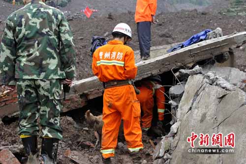 記者從現(xiàn)場消防救援人員處了解到,29日清晨,貴州省消防部隊出動6個突擊隊,每隊20人,共計120人參加搶險救援。消防官兵利用雷達生命探測儀地毯式探尋被困人員,出動搜救犬進行拉網(wǎng)式排查搜救。消防官兵在開展救援時,周圍山體多次發(fā)生垮塌,所幸都是有驚無險。