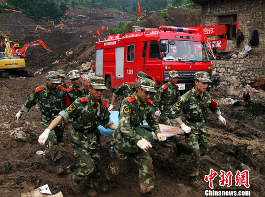 50個(gè)小時(shí)過(guò)去了,冒著山體隨時(shí)可能再次垮塌的危險(xiǎn),救援者從泥漿和碎石中搜救出六位被埋者的遺體。在30日下午發(fā)掘第五位失蹤者遺體時(shí),在陽(yáng)光下結(jié)板的泥漿和碎石讓官兵的救援行動(dòng)異常困難,不到半小時(shí)間便敲斷了3根鐵鍬和一把榔頭。當(dāng)失蹤者的遺體被挖掘出來(lái)裹上毛毯放上擔(dān)架后,記者看見(jiàn)旁邊手拿紅旗的一位武警戰(zhàn)士紅了眼圈。