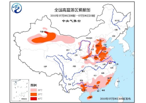 中新網(wǎng)7月6日電 中央氣象臺6日清晨6時繼續(xù)發(fā)布高溫黃色預警:預計,今天白天,甘肅西北部、內(nèi)蒙古中西部的部分地區(qū)、陜西東部和南部、華北大部、黃淮大部、湖北西北部、江淮東部、湖南南部、江西南部、華南大部等地有35~37℃,北京、河北中南部、山東西北部、陜西關中等地的部分地區(qū)有38~40℃的高溫天氣。