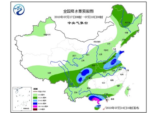 中新網(wǎng)7月14日電 據(jù)中央氣象臺(tái)預(yù)報(bào),未來(lái)10天,降雨區(qū)范圍較廣,雨帶位置不穩(wěn)定;江南中南部、華南北部多高溫少雨天氣;西北地區(qū)東部、華北、黃淮、東北多陣性降雨。14日,江南東北部仍將有較大降雨;之后,雨區(qū)北抬到淮河流域;江南北部將轉(zhuǎn)為高溫少雨天氣。17日前后,1002號(hào)熱帶風(fēng)暴“康森”將影響華南沿海。
