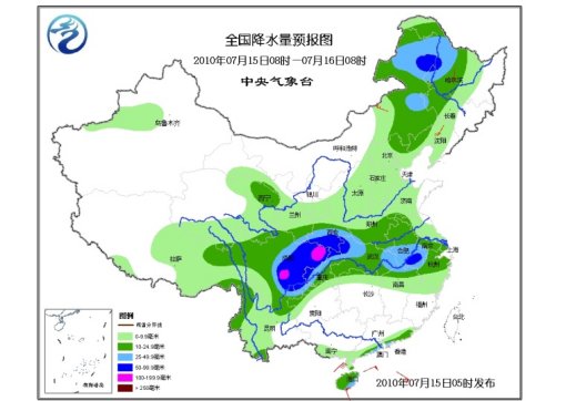 15日08時(shí)至16日08時(shí),新疆天山西部、青海南部和東部、西藏中東部、甘肅中東部、寧夏南部、陜西大部、內(nèi)蒙古中東部、東北地區(qū)中西部、華北、黃淮大部、江淮、江漢、江南北部、華南南部、四川、重慶、云南大部及貴州北部有小到中雨或陣雨,其中,陜西南部、四川中東部、重慶西部和北部、湖北西北部和東部、安徽中南部、江西北部、內(nèi)蒙古東部、黑龍江西部等地的部分地區(qū)有大雨或暴雨,四川盆地局部有大暴雨;上述局部地區(qū)并伴有短時(shí)雷雨大風(fēng)等強(qiáng)對(duì)流天氣。新疆北部、內(nèi)蒙古中東部、東北地區(qū)等地有4~6級(jí)風(fēng)。南海中北部有6~8級(jí)大風(fēng);“康森”中心經(jīng)過附近海面的風(fēng)力可達(dá)9~11級(jí);南海南部有5~7級(jí)西南風(fēng)。