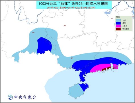 受其影響,21日晚上到22日白天,南海中北部海面、海南東部和北部沿海、瓊州海峽、北部灣大部海面、廣東沿海、廣西沿海將有7-9級(jí)大風(fēng),部分海域或地區(qū)風(fēng)力可達(dá)10-11級(jí),“燦都”中心經(jīng)過的附近海面或地區(qū)的風(fēng)力可達(dá)12-13級(jí)。廣東中南部、海南、廣西東南部將有大雨或暴雨,其中廣東沿海和海南北部的局部地區(qū)有大暴雨或特大暴雨。